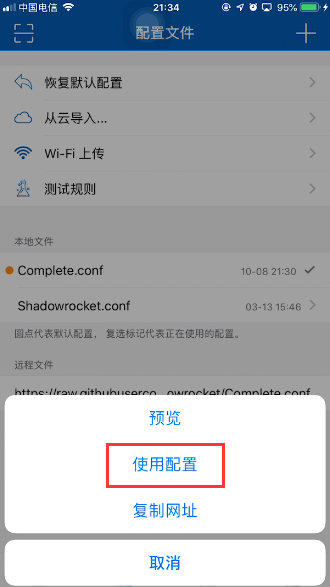 点击下载好的远程文件,选择【使用配置】。