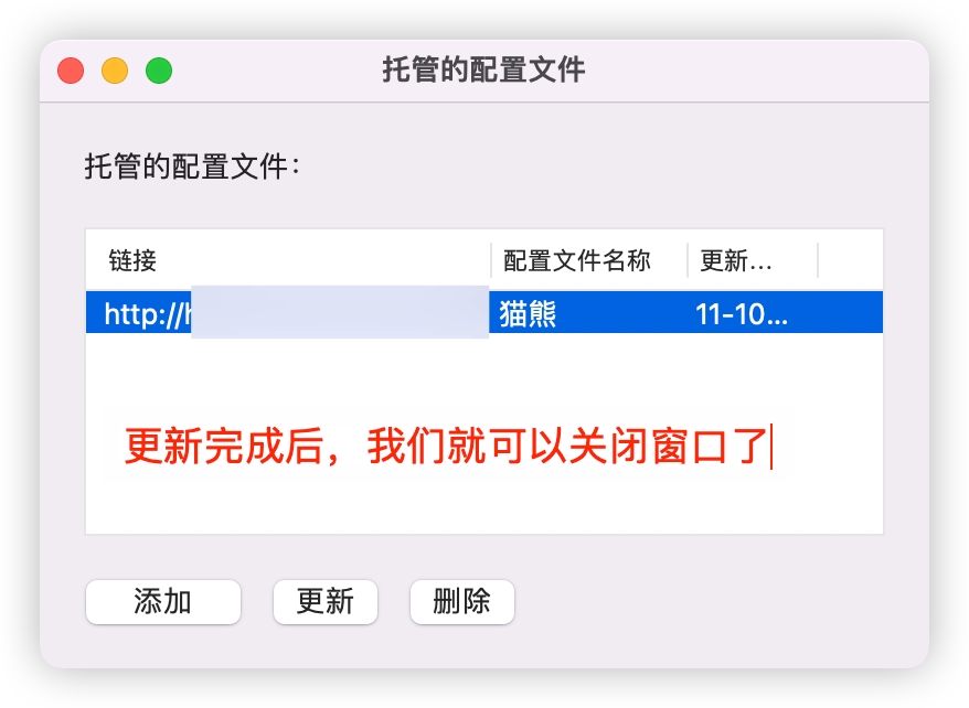 订阅添加后会自动更新,更新后,我们关闭窗口即可。