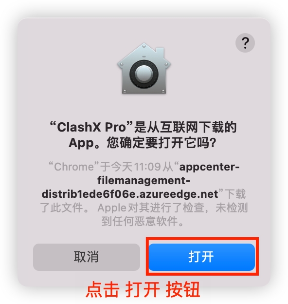 安装完成后,我们在应用程序里面找到ClashX Pro,然后打开它,如果系统提示不安全,无法打开,我们需要打开一个开启所有来源的开关,具体看教程 开启所有来源教程